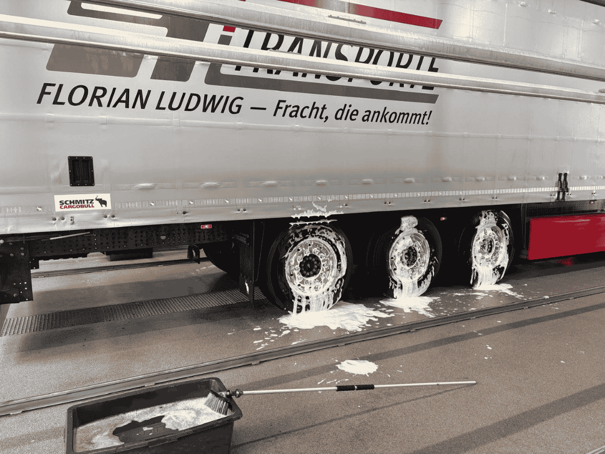 Selbst spezielle Fahrzeuge wie Autotransporter oder Holztransporter stellen für uns kein Problem dar. Auch stark verschmutzte Fahrzeuge – etwa nach Baustellenfahrten – reinigen wir zuverlässig. Hier bieten wir dir zusätzlich eine manuelle Vorbehandlung oder Felgenreinigung, damit dein LKW wieder rundum sauber ist.