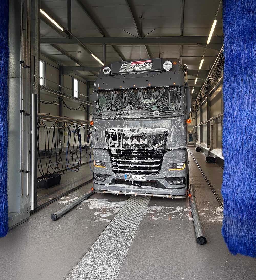 Unsere Waschanlage ist auf verschiedenste LKW-Typen ausgelegt. Sattelzüge mit oder ohne Aufbau, Pritschen- und Kofferfahrzeuge, Gliederzüge sowie Wechselpritschen bekommen bei uns die Reinigung, die sie verdienen. Auch Solo-Zugmaschinen, Anhänger oder Sattelauflieger finden problemlos Platz in unserer Anlage – ohne lange Wartezeiten, aber mit vollem Service.